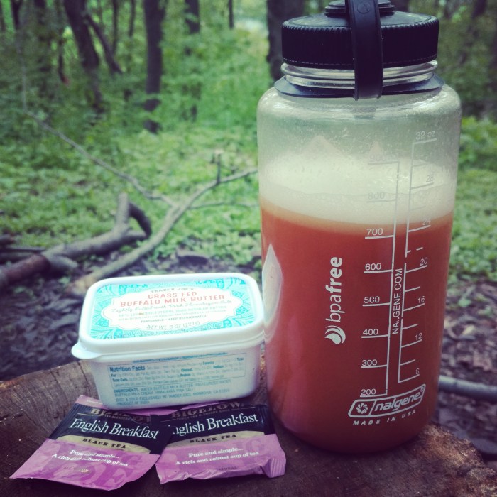 This recipe was inspired by Tibetan Yak Butter Tea which I have never tasted but is rumored to be energizing but not appetizing. The arrival of water buffalo butter in Trader Joe’s allowed me to get a less buttery and more gamey flavor to complement the black tea without overwhelming it.